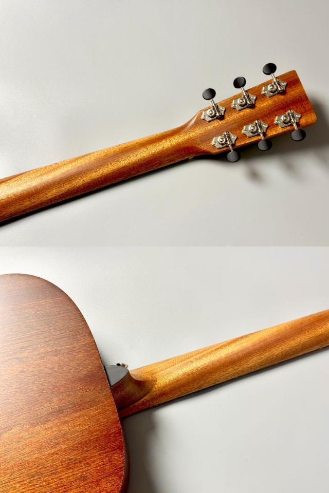 ソリッド サペリトップ/バック&サイド は、サテンフィニッシュにより素材感をそのまま感じられる落ち着いたルックスとし、スキャロップド X ブレーシングを組み合わせることで、豊かな低域とクリアな中高域のバランスを確保。全体に力強さと伸びのある鳴りを実現し、ソロプレイからストロークまで幅広い奏法に対応します。