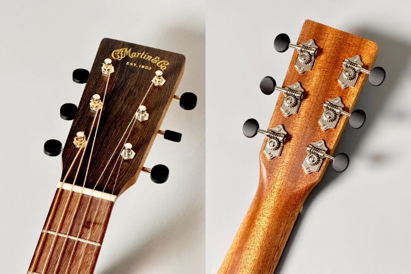 ネックは Performing Artist(PA)プロファイル と High Performance Taper を採用し、握りやすさと滑らかなポジション移動を両立。ナット幅は約44.5m で、フィンガリング/コード弾きともに快適な設計です。スケールは Martin伝統の約645mm で、適度なテンション感と抜けの良いサウンドが特徴です。