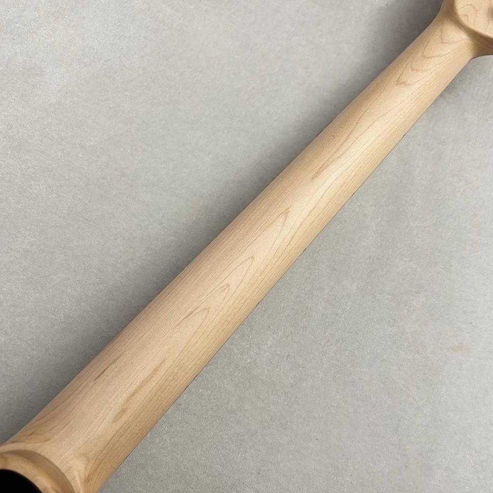 ネックと指板のメイプルはそれぞれ異なる木取りで貼り合わせられている事により、1ピースのメイプルネックと比較して倍音構成が複雑になります。