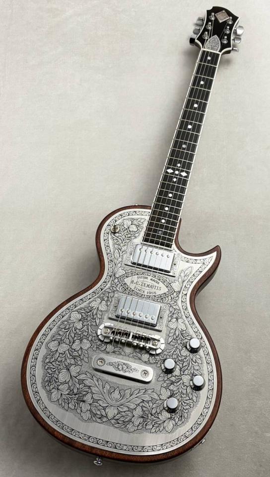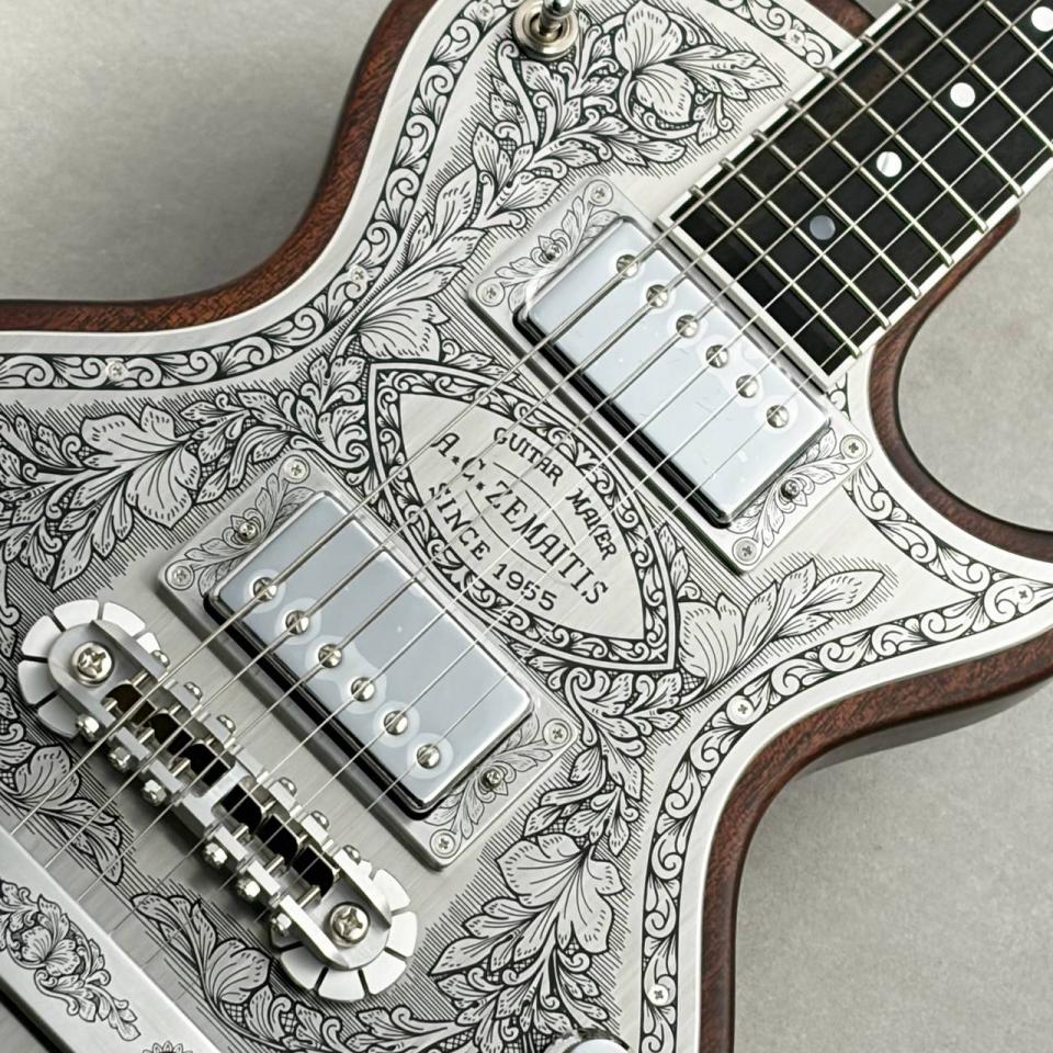ZEMAITIS(ゼマティス/ゼマイティス):トニー・ゼマティスが1955年に作った独自デザインのエレクトリックギターから始まるイギリスのブランドで、彫刻師ダニー・オブライエンによる彫金が特徴。トニーの他界後は神田商会のもとで再興され、主要モデルはMF(メタルフロント),PF(パールフロント,DF(ディスクフロント),SUPERIOR(スーペリア)など。(ZEMAITIS/ゼマティス/ゼマイティスのキーワード検索結果はこちら)