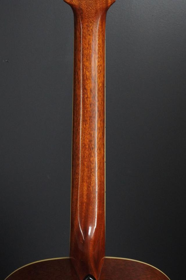 40年代から50年代に変わった時期、Gibsonではレアなダウンベリーのブリッジが一般的にアップベリーとなった頃、そして50年辺りにはファイヤーストライプのピックガードが用いられる事もありましたので、そのようなレトロなルックスをイメージしてショップオーダーした最新作です。