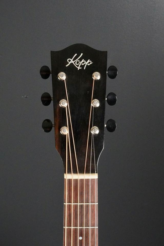 うっすらと杢目の出たエボニーを使ったヘッドプレートに、ホワイトの「KOPP」ロゴが鮮やかに輝きます。