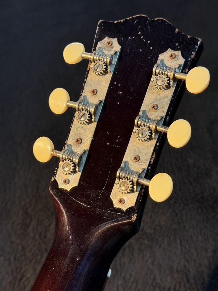1942~1945年にしか存在しないヘッドのBanner&スクリプトロゴ。レクタングラーブリッジ&ロングサドル。オープンバックの3連ペグとヴィンテージ感満載!更にサーマリーエイジド加工されたアディロンダックレッドスプルース をトップ材に材用することによって弾き込まれたヴィンテージサウンドに肉薄する勢いで、今後の成長が非常に楽しみなモデルに仕上がっています。