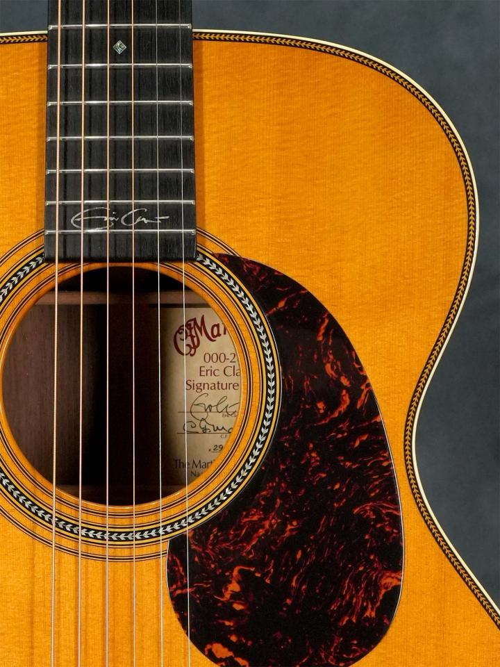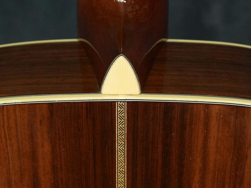 シンプルな000-28ECをベースにしながら、パールを使ったヘリンボーンのロゼッタやハカランダのヘッドストックの突板など、上質な素材を使った限定モデルならではデザインが採用されています。