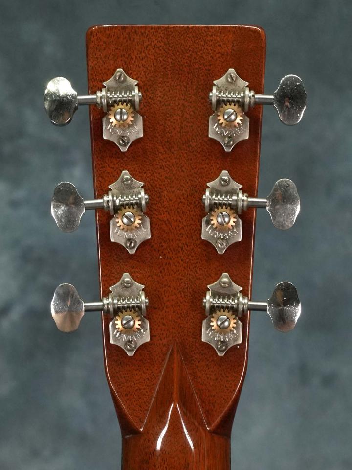 アイボロイド材を使うMartinギターの宿命とも言えるボディバックのバインディング剥がれが修理されており、バインディングが縮んで隙間が出たセンターは同素材にて埋められた上で丁寧に補修されており、その他は光でかざせば分かる程度の米粒大の打痕や弾き傷/擦り傷などあるものの、木部の割れ/剥がれを伴う大きなダメージや修復歴は無く年式を考えればとても綺麗な状態を保っています。