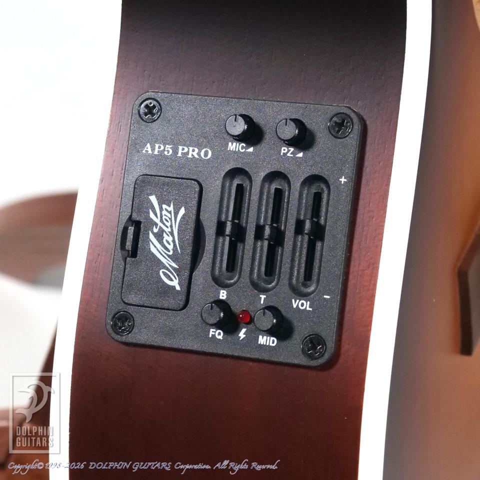 特別仕様のもう一つのポイントは、メイトンの魅力の一つでもある、ピックアップ・システムに上位モデル同様AP-5 PROを搭載。オリジナルのアンダーサドル・PUにコンデンサーマイクを併用する事により、奥行きのある音域と抜群なエアー感に加え、ボディー・ヒット音も余すことなくアウトプットします。