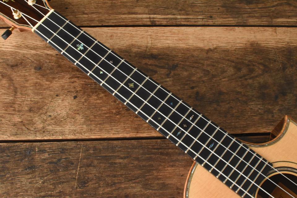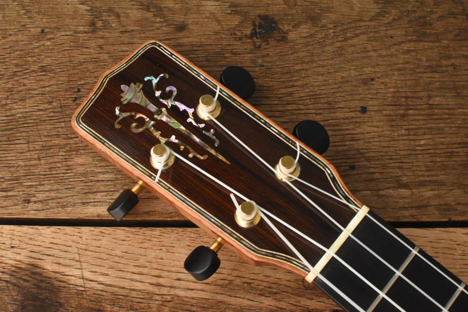 大変貴重なケリー・チャー氏によるテナーウクレレ。上質な材と見事な装飾が施されたカスタムモデルとなっております。ぜひ一度お試しくださいませ。