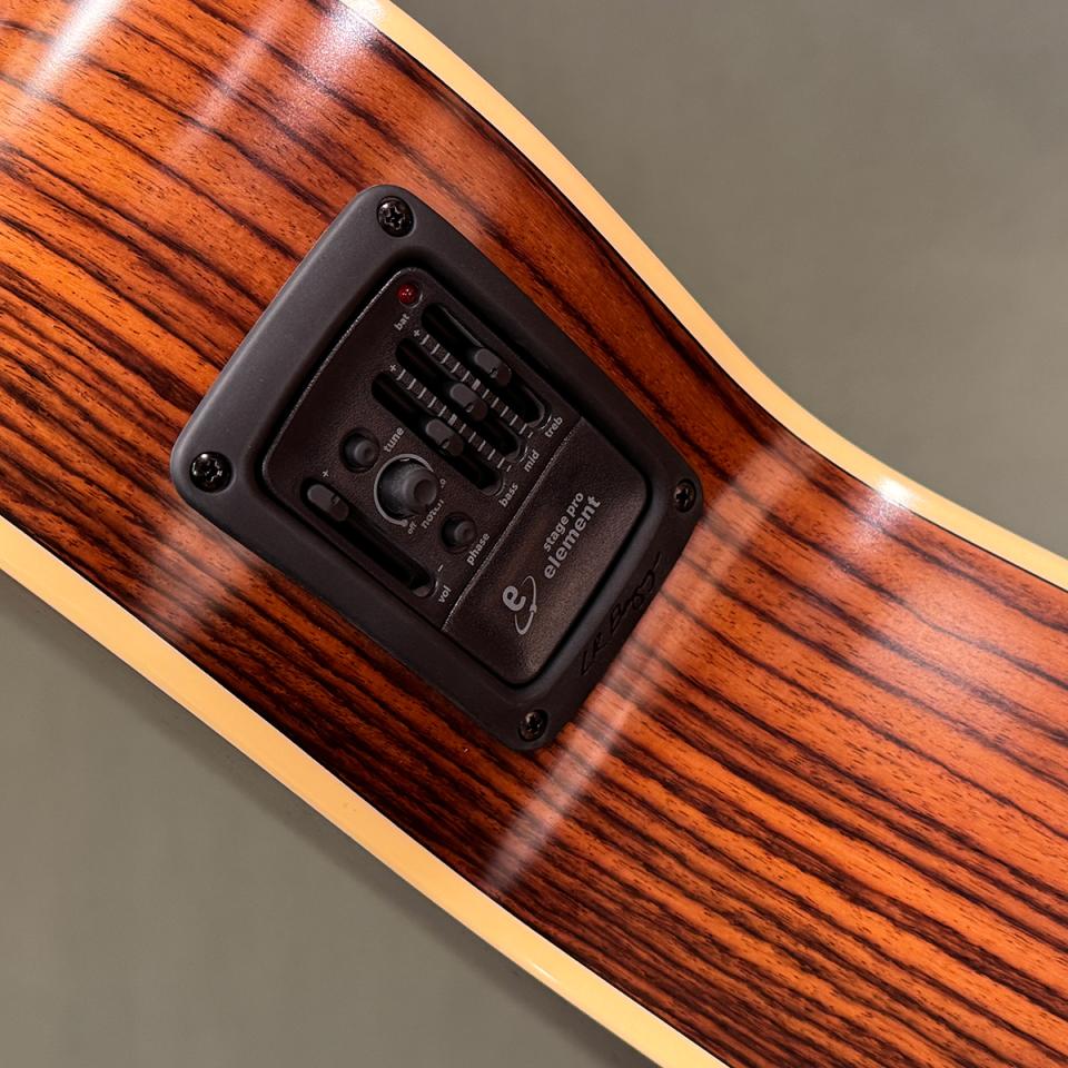 従来のピックアップシステムから刷新され、L.R.Baggs社製プリアンプを搭載した即戦力エレアコ。