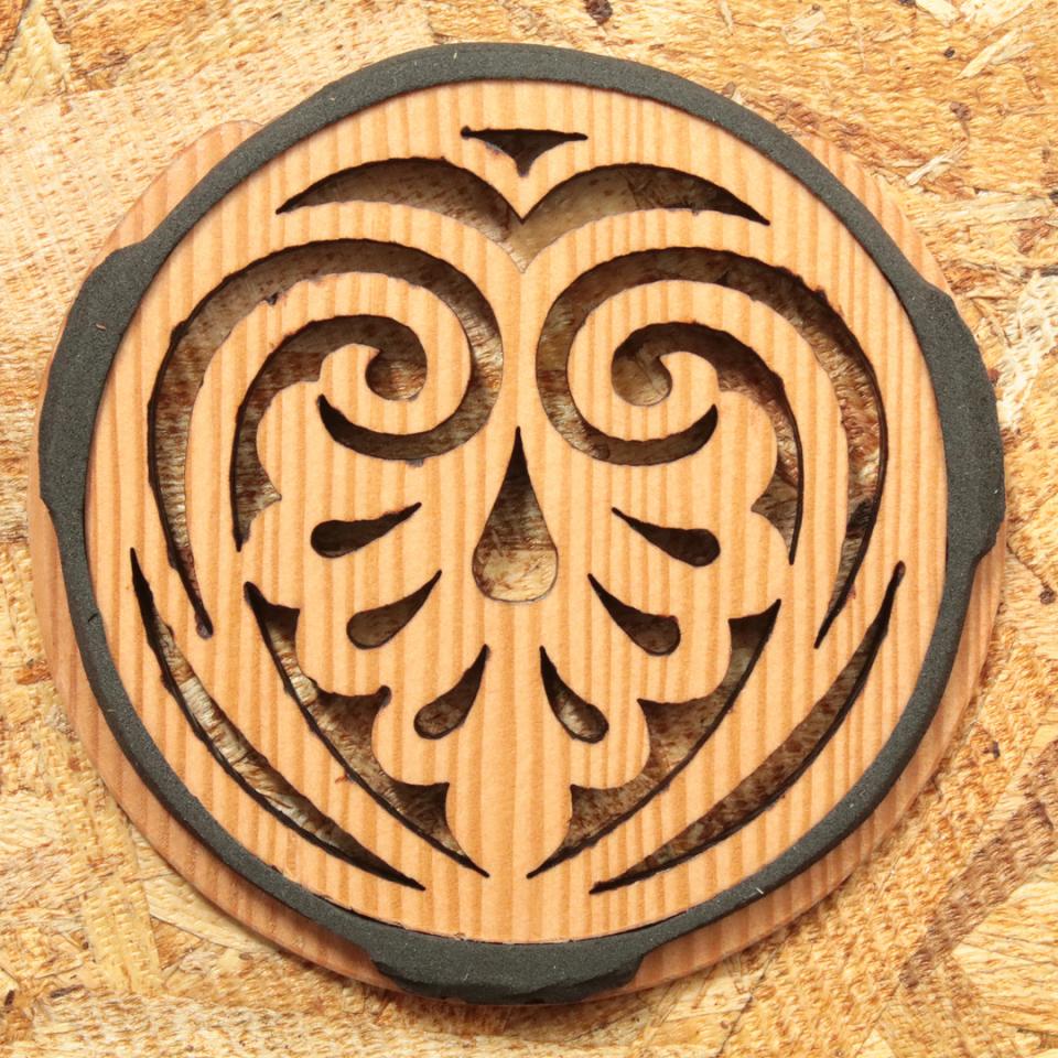 印象的なデザインが魅力のオシャレな木製サウンドホールカバー。自然な響きを残したまま、適確にフィードバックを抑制します。Made in U.S.A.