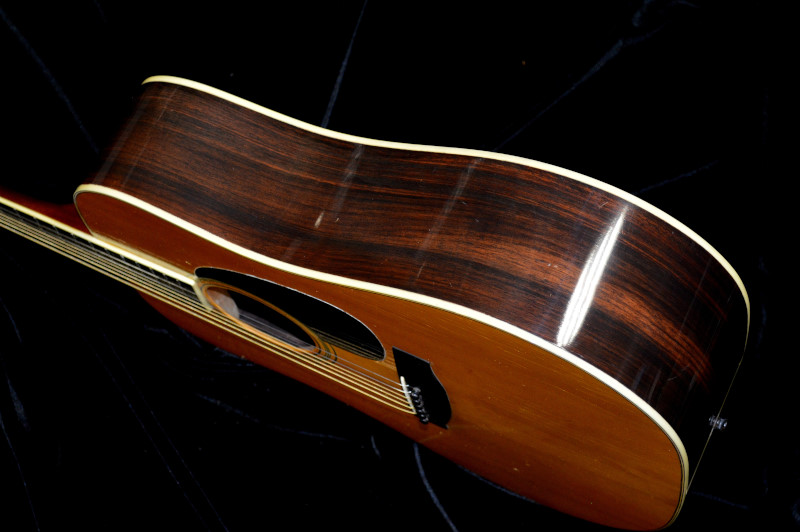 トップは単板、サイド&バックはローズウッドの合板、指板はエボニーです。大事に良く使われていたと推測されます。