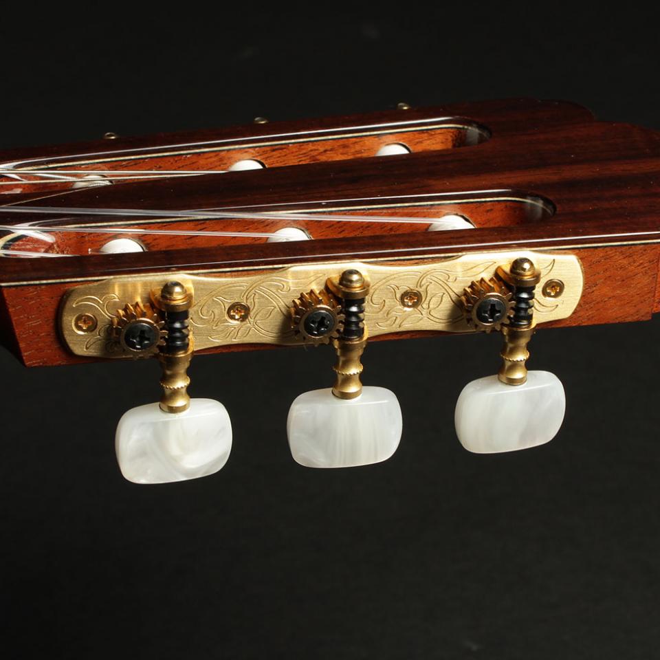 指板に黒檀、駒にハカランダを使用。