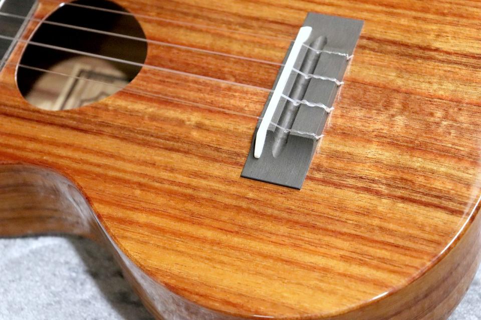 魅力的な杢目を持つハワイアンコアボディ、ネックはマホガニーで芯がありつつも甘い色気のあるサウンドを持ちます。指板とブリッジはエボニー、ナットとサドルはタスクを採用。より輪郭のあるサウンドを作り出します。
